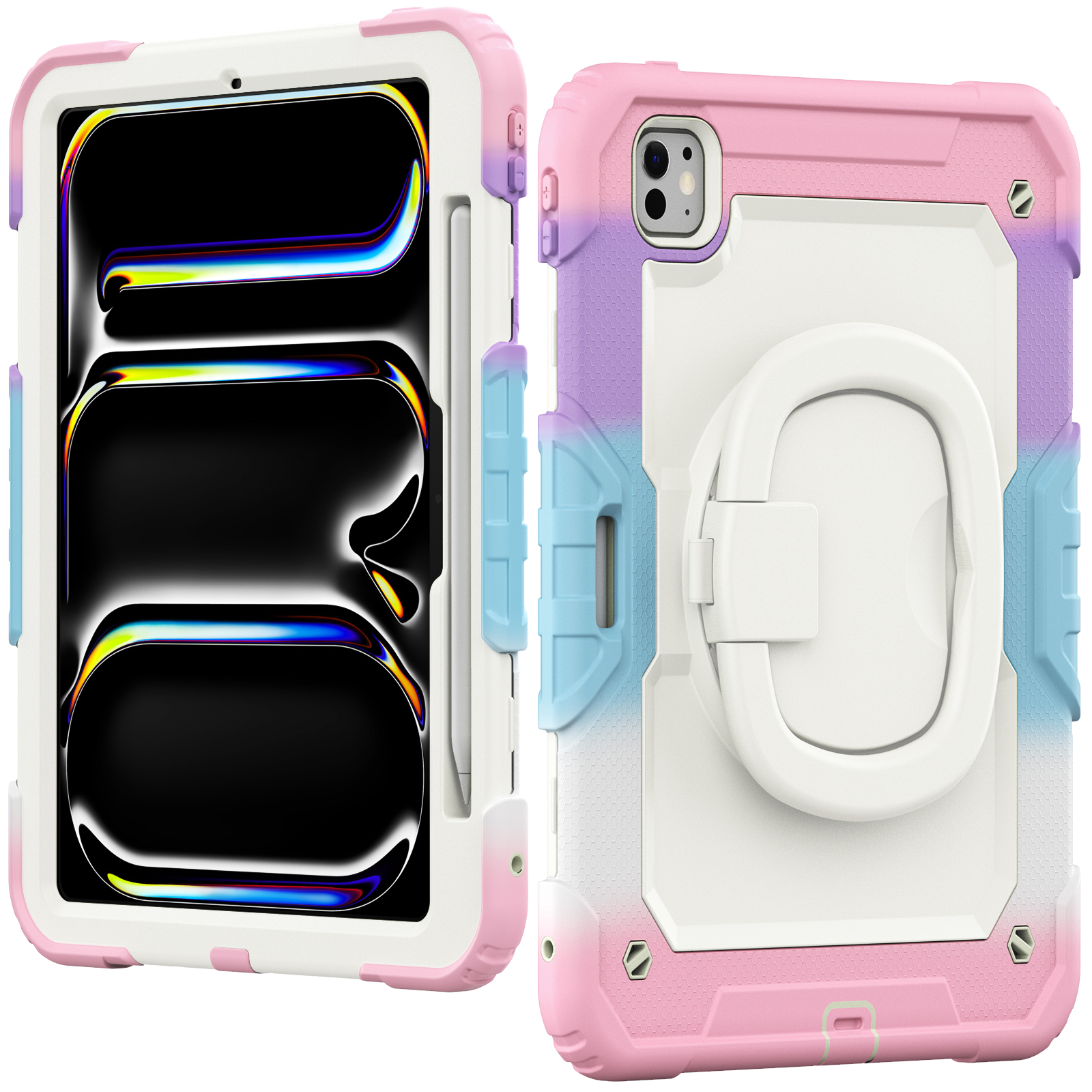 IPAD Pro13 M4 (2024)/M5 A3360 (2025) | 360 Rotating Hand Strap Shockproof Cover with Stand (Pink)